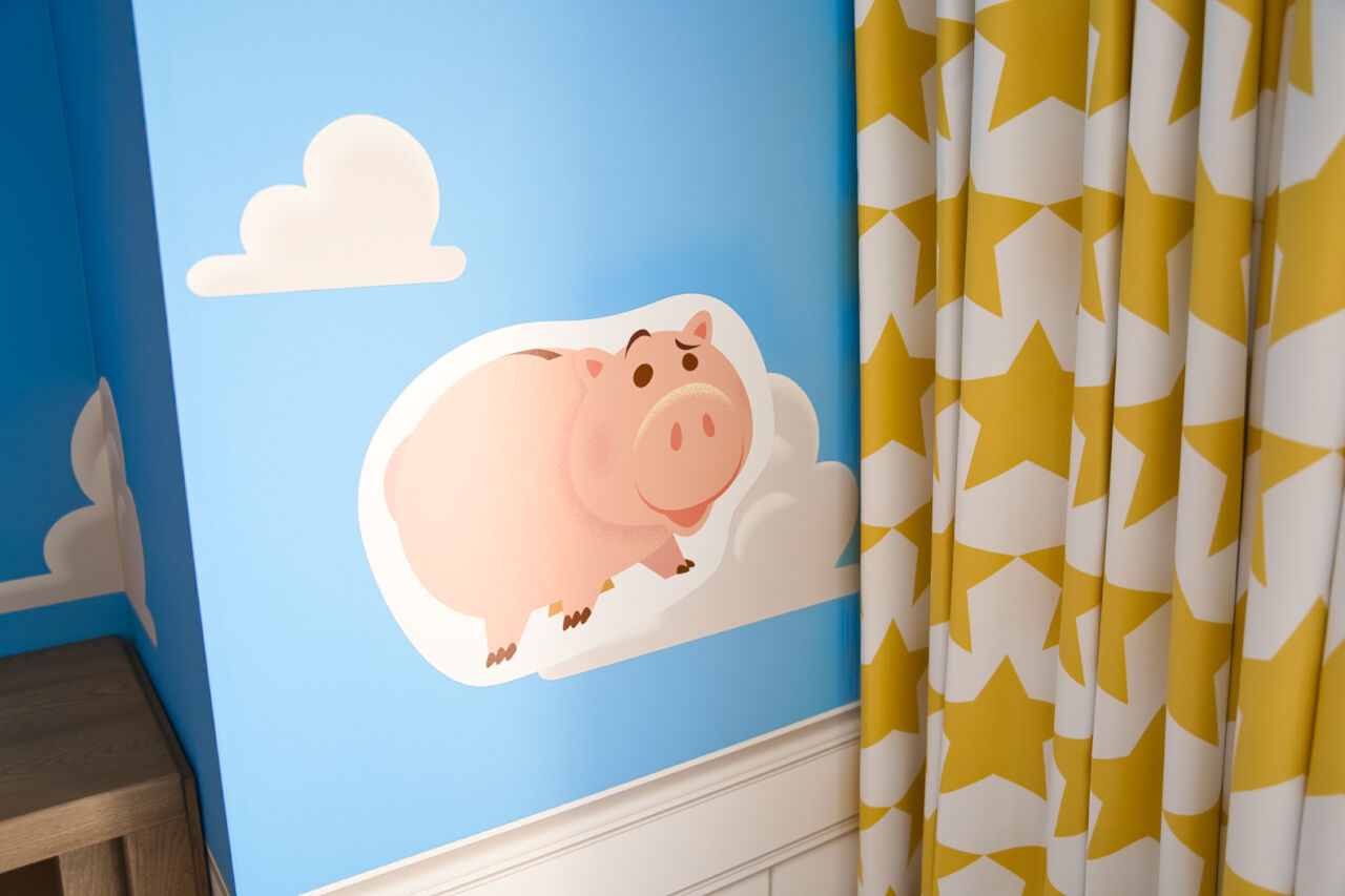 訪れたゲストが『トイ・ストーリー』シリーズのおもちゃの世界に入り込んだかのように感じられる遊び心のある工夫が散りばめられています。